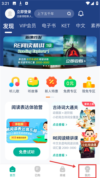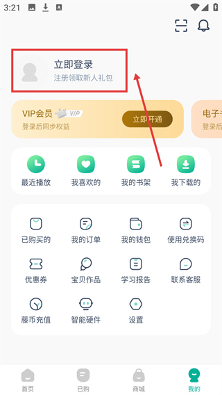 2、进入【我的】页面后,点击【立即登录】可进入登录页注册领新人礼包。
