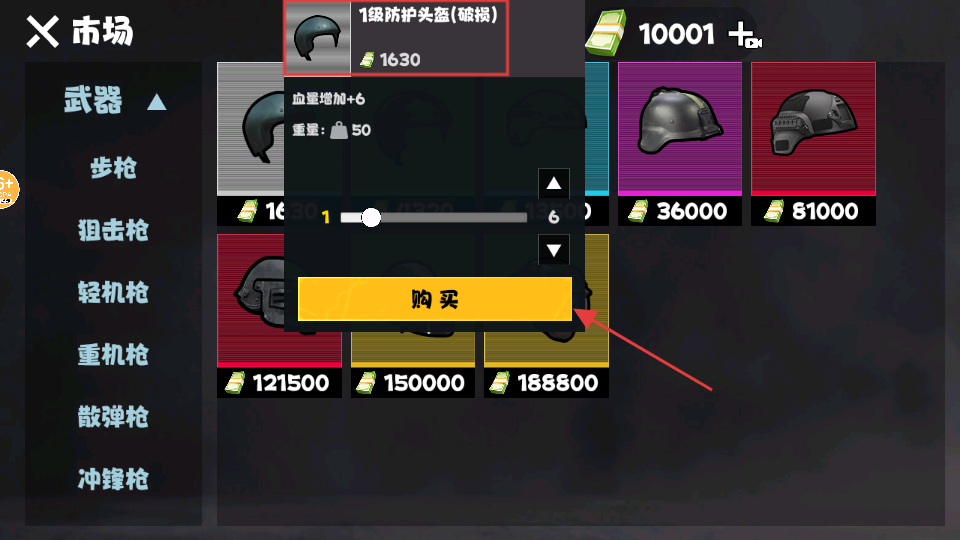 1、在市场中,可购买【1级防护头盔(破损)】,其能增加血量,用少量货币购入可提升初期生存能力。