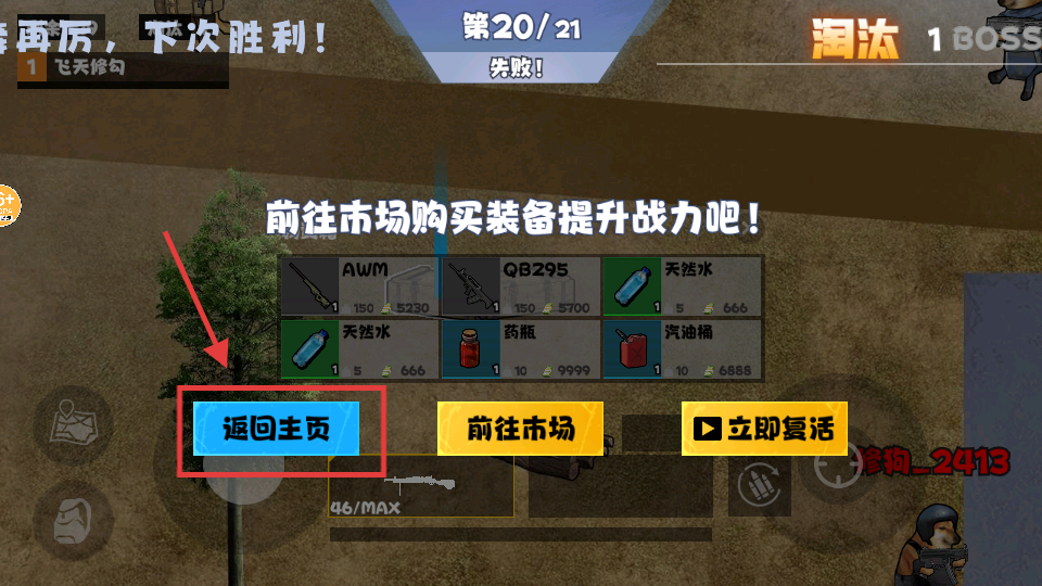 4、战斗失败后,点击【返回主页】,可重新规划策略,或前往市场强化装备后再次挑战。