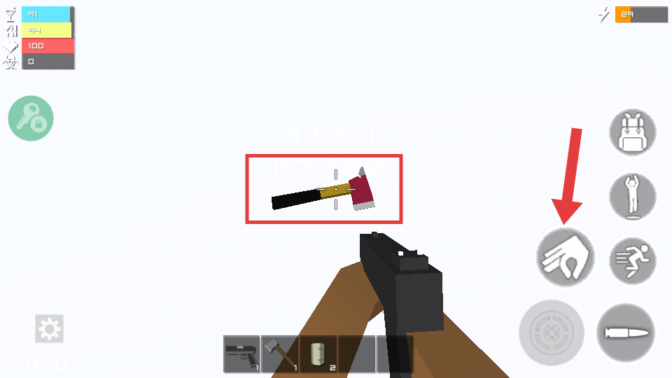 4、发现消防斧等资源时,点击交互按钮拾取,提升生存能力。
