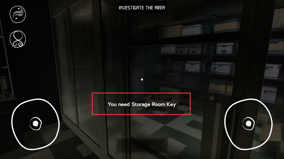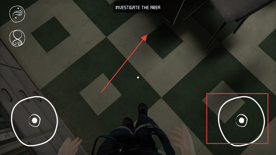 1、根据调查区域的任务提示,利用右侧虚拟摇杆控制角色移动,在场景中探索不同区域,寻找线索。