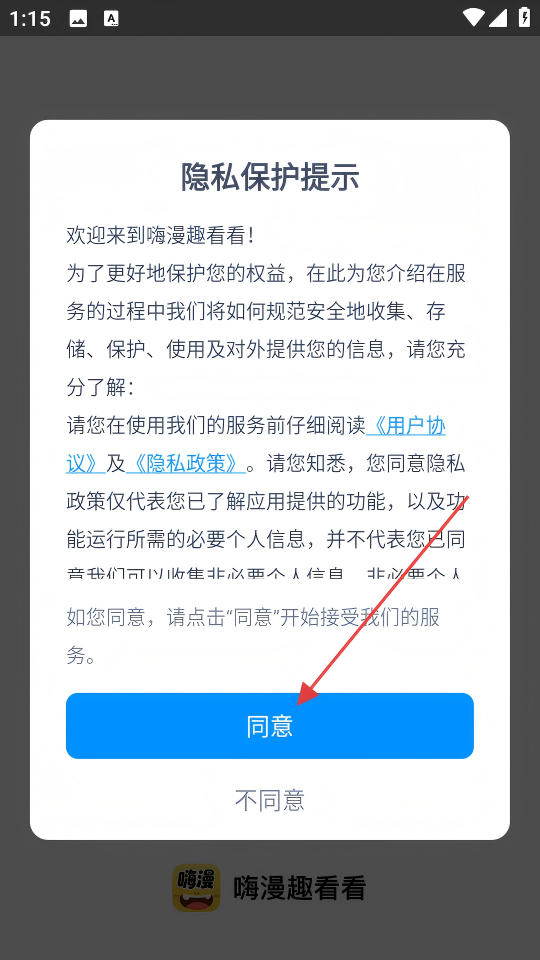 1、点击【同意】,进入APP首页。
