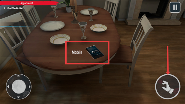 3、找到餐桌上的【Mobile】后,点击右下角的手部图标进行交互,完成该物品的收集任务。