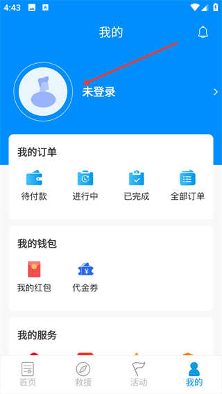 2、在个人中心页面,点击【未登录】区域。
