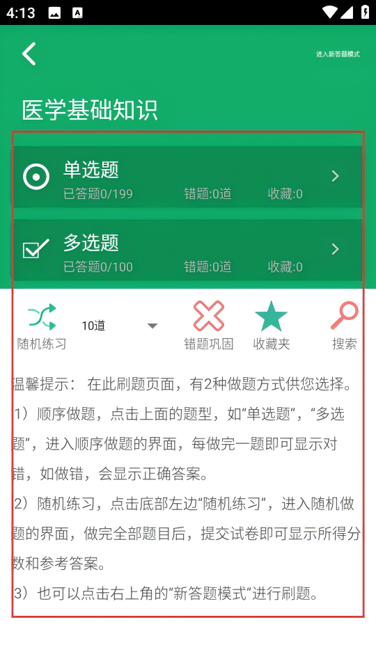 3、在练习子页面点击【医学基础知识】,进入医学基础知识的刷题页面。