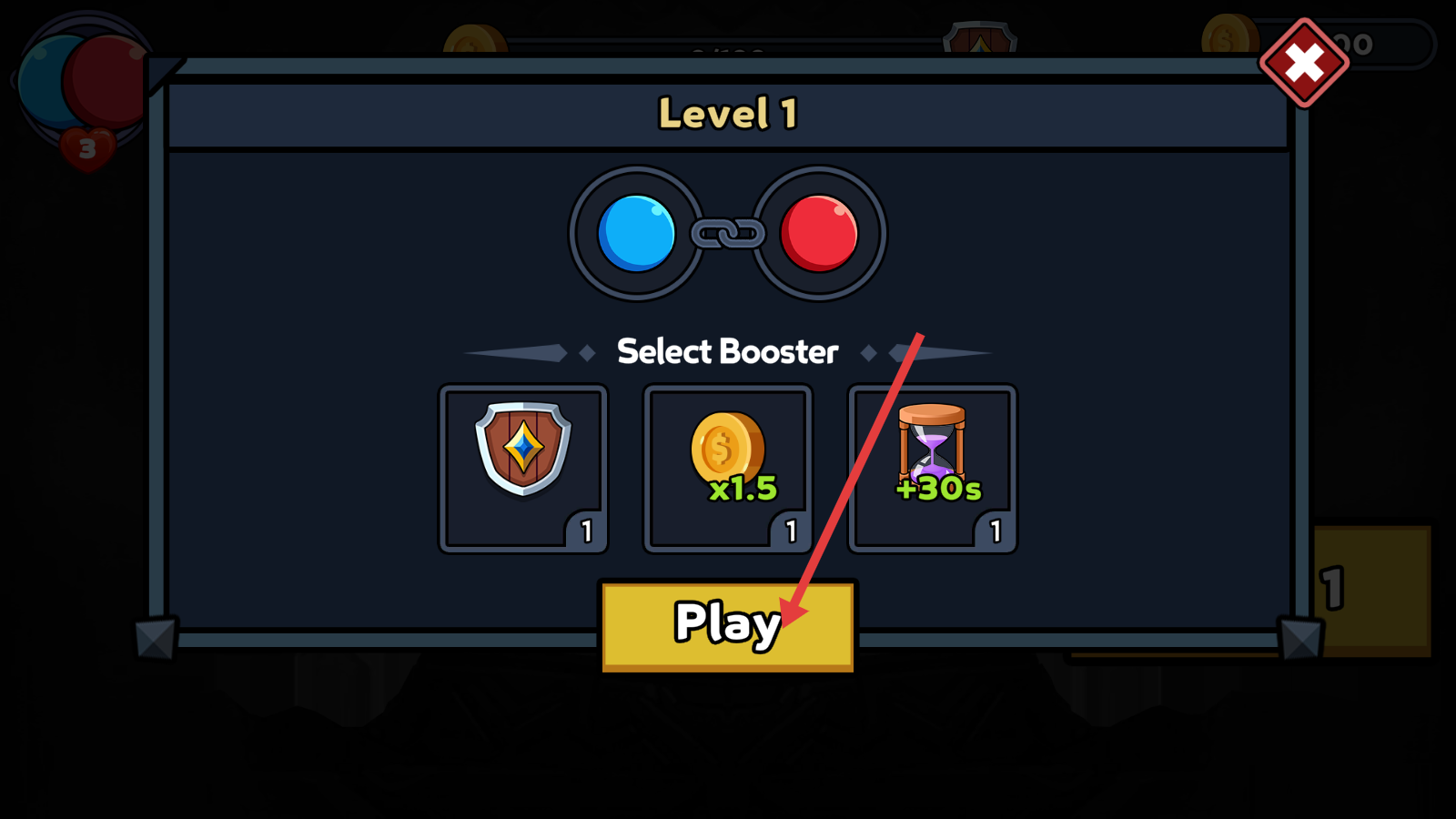 1、点击右侧黄色的【Level1】按钮进入第一关。