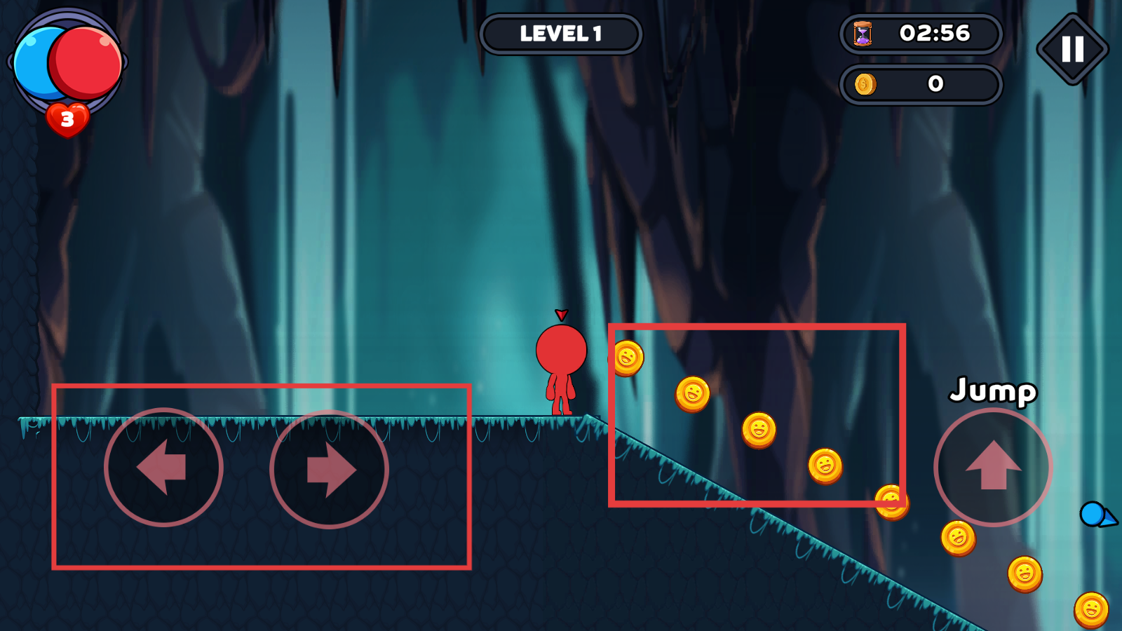 3、使用方向键移动,点击【Jump】跳跃收集金币。
