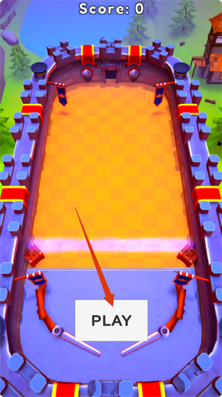 1、点击【PLAY】按钮开始游戏,进入城堡竞技场,准备参与弹球对战,开启得分挑战。