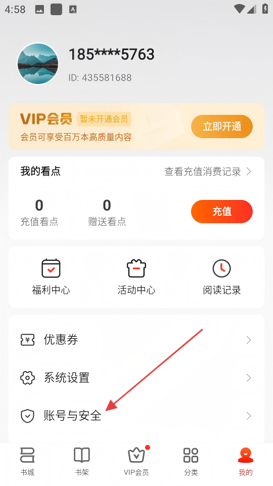 2、在个人页面,点击【账号与安全】选项,进入账号与安全页面。