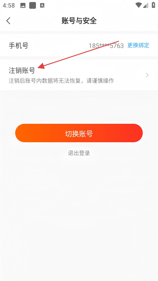 3、在账号与安全页面,点击【注销账号】选项,进入注销账号说明页面。