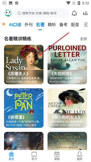 4、名著精讲选取国外原版名著,通过精听细读结合的方式,让用户在感受英文文化魅力的同时,提升语言感知力。