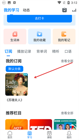 4、在学习页面的“我的订阅”板块中,可查看刚才订阅的书籍。