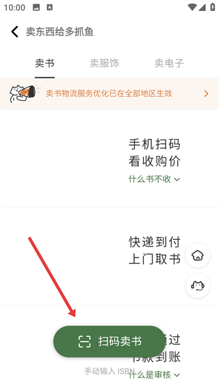 4、之后扫【多抓鱼码或ISBN条码】即可卖书,扫不出可输【ISBN号】哦。