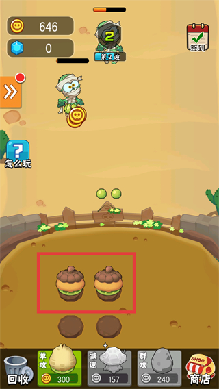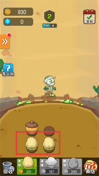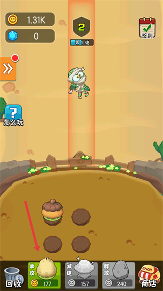 1、点击【单攻】类植物(消耗【177-金币】),将其种植在地块上,启动对僵尸的攻击防御。