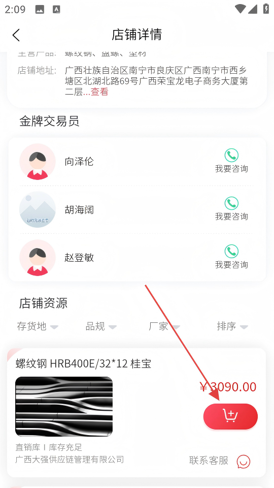 4、在店铺详情页面,点击商品右侧的购物车按钮,进行该商品的购买操作。