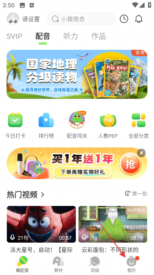 1、素材库实时更新欧美流行儿童动画、各类型绘本及同步教材,视频台词中生词点击可即时翻译,结合语境帮助孩子记忆。