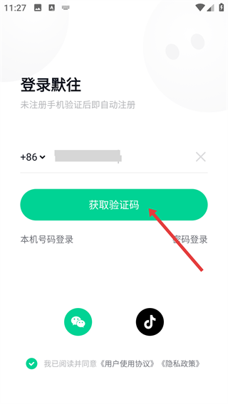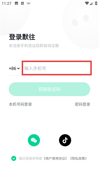 1、打开默往,在登录界面的框中填写自己的手机号,开启注册流程哦。
