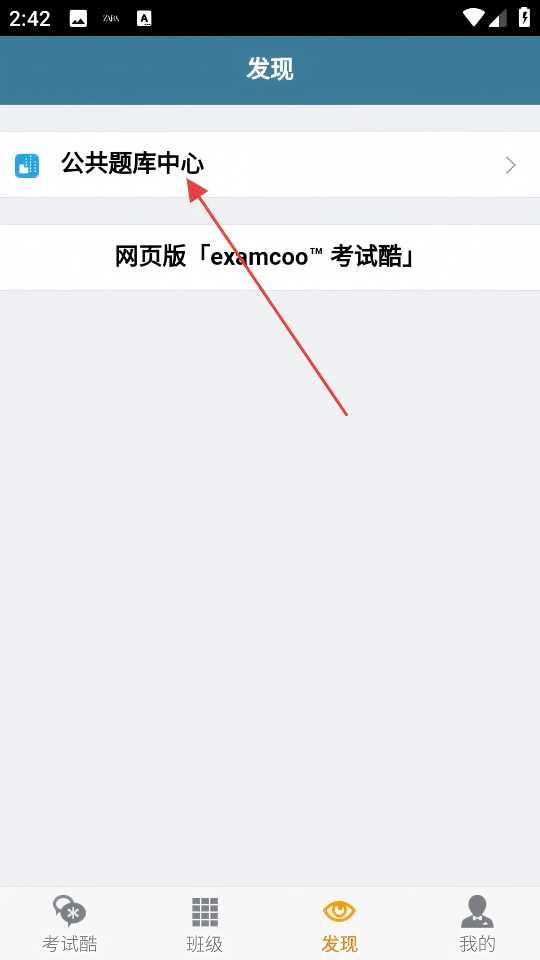 1、在发现页,点击【公共题库中心】选项,进入题库分类。