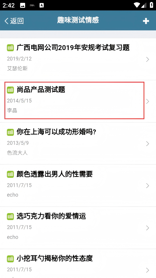 4、在【趣味测试情感】列表页,点击【尚品产品测试题】测试条目,可进入对应测试题页面开始答题。