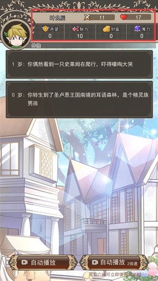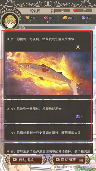 3、通过【自动播放】快速推进角色成长剧情,关注【精灵族】等种族特性培养对应属性提升战力。