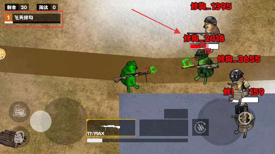 3、操控【飞天修勾】,瞄准【修狗-2418】等敌人射击,留意敌人行动,积累淘汰数。