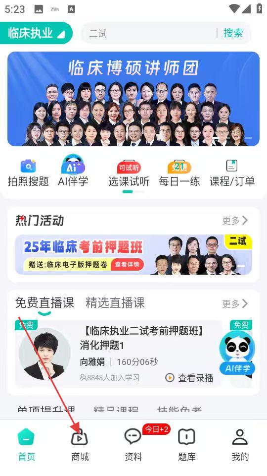 1、在软件首页,点击底部【商城】图标,进入选课界面浏览课程