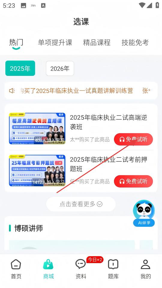 2、在选课界面,找到目标课程,点击【免费试听】按钮体验课程内容。