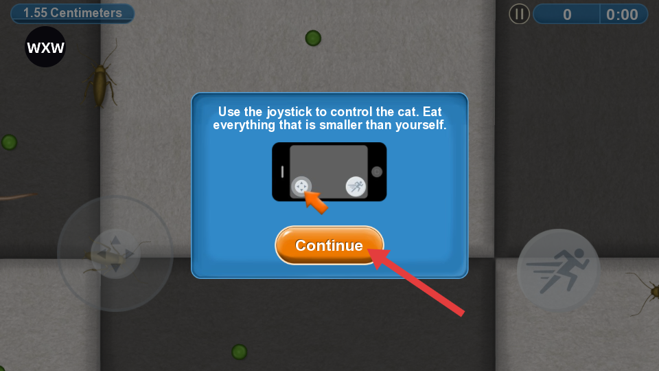 2、点击【Continue】,按照提示使用摇杆控制猫咪,开始游戏操作。