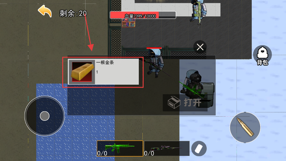 3、战斗中遇到【一根金条】这类物资要及时拾取,存入【背包】或使用,提升生存资源储备。