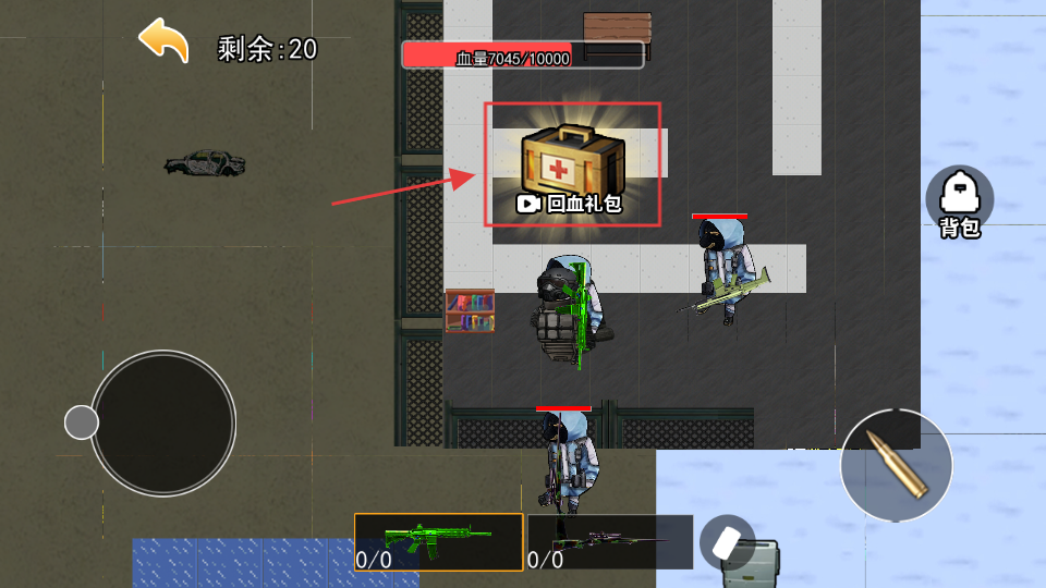 4、战斗时血量不足,找到【回血礼包】并使用,可快速恢复生命值,保持战斗状态继续作战。
