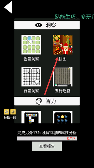 1、在【洞察】分类中点击【拼图】选项,可进入该小游戏的启动界面,是洞察类能力训练游戏之一。