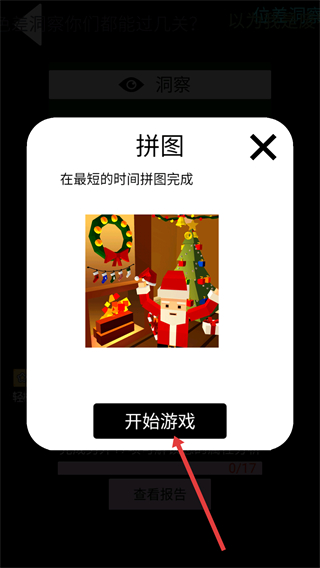 2、点击【拼图】后弹出游戏说明框,目标为最短时间完成拼图,点击【开始游戏】进入游玩界面。