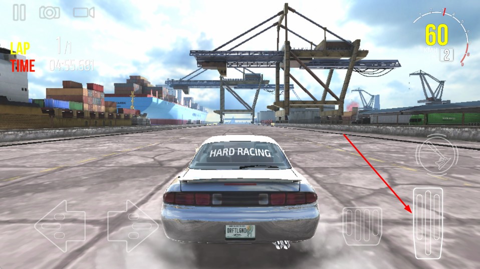 2、驾驶时,点击右侧油门按键,能让车辆加速,在赛道上快速行驶。