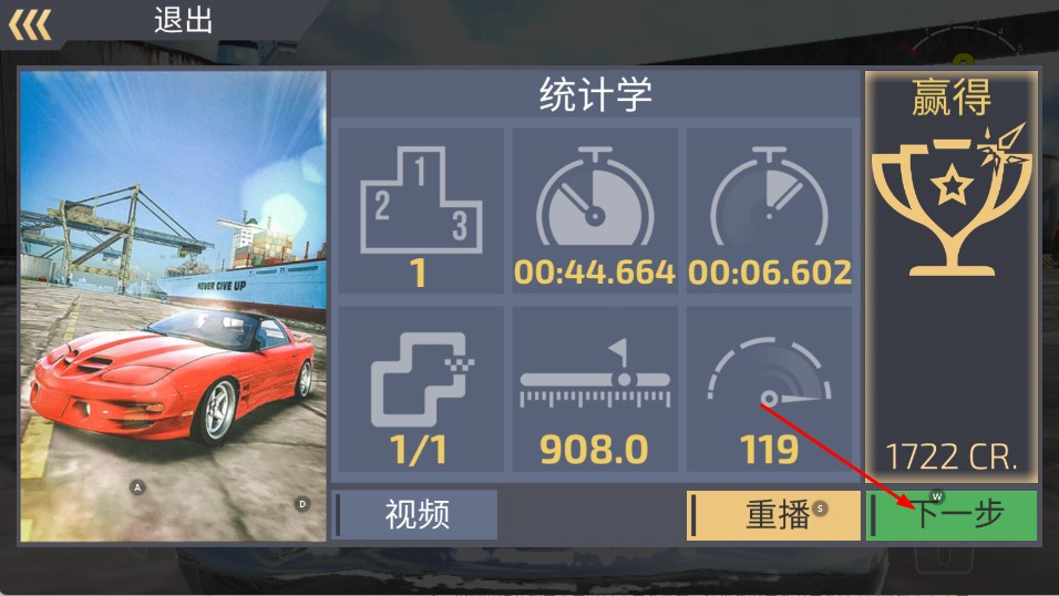 4、比赛结束后,点击【下一步】按钮,可进入后续流程,继续游戏体验。