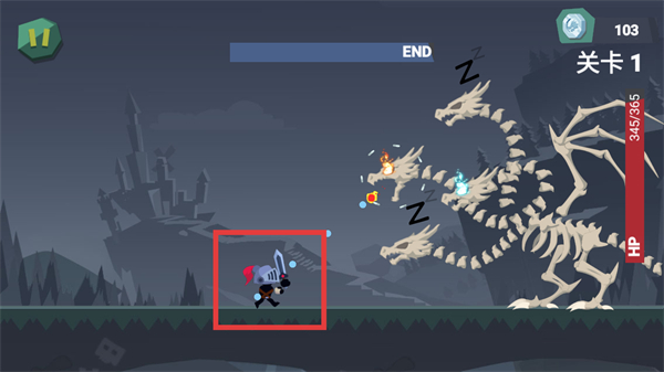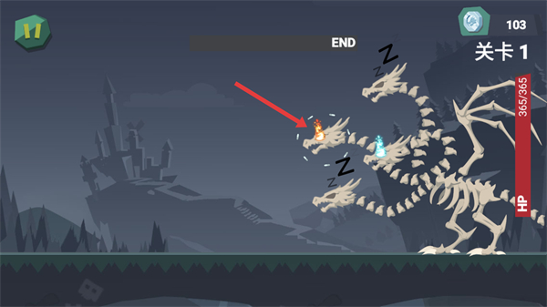 2、在关卡1中,点击红色箭头指向的魔龙头部准备进行攻击。