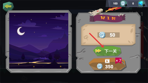 4、关卡胜利后,点击【下一关】按钮,继续挑战后续关卡。