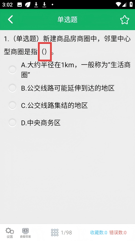 4、在【单选题】答题页面,可选择题目选项进行答题。