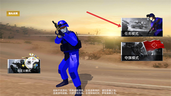 1、选择【任务模式】,进入游戏接受“击倒指挥官”的任务目标。
