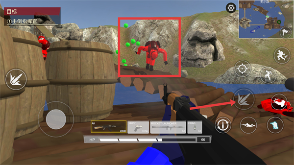 2、在场景中移动,根据左上角的目标提示,寻找敌方指挥官的位置,准备发起攻击。