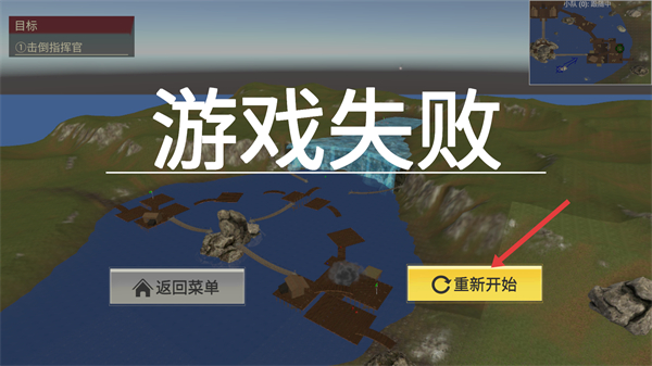 4、游戏失败后,点击【重新开始】按钮,再次挑战任务,直至完成“击倒指挥官”的目标。