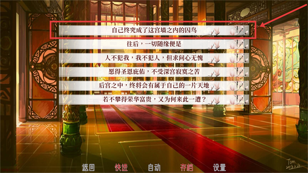 1、选择【自己终究成了这宫墙之内的囚鸟】-【往后,一切随缘便是】等初始心态选项,可奠定角色后续宫斗策略的基础,影响剧情走向。