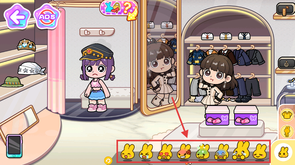 2、点击底部的【小黄兔】表情图标,改变角色情绪状态,不同表情对应不同互动效果,还可解锁新表情。