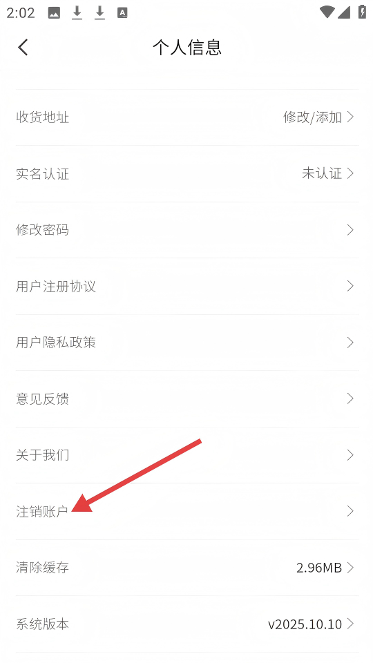 3、在【个人信息】页面,点击【注销账户】,进入注销确认流程。