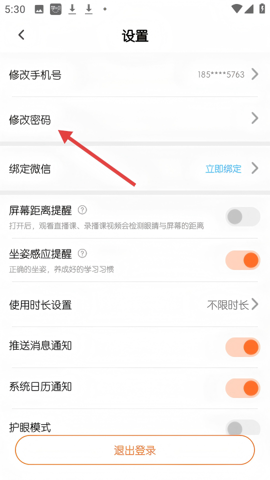 3、在【设置】页面,点击【修改密码】选项,进入修改密码流程。