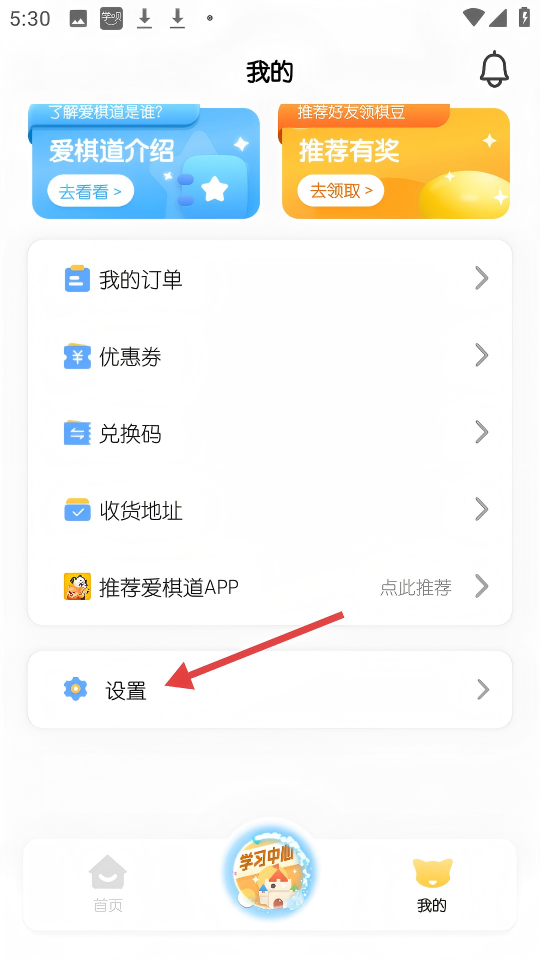 1、在爱棋道首页,点击底部的【我的】,进入个人页面。