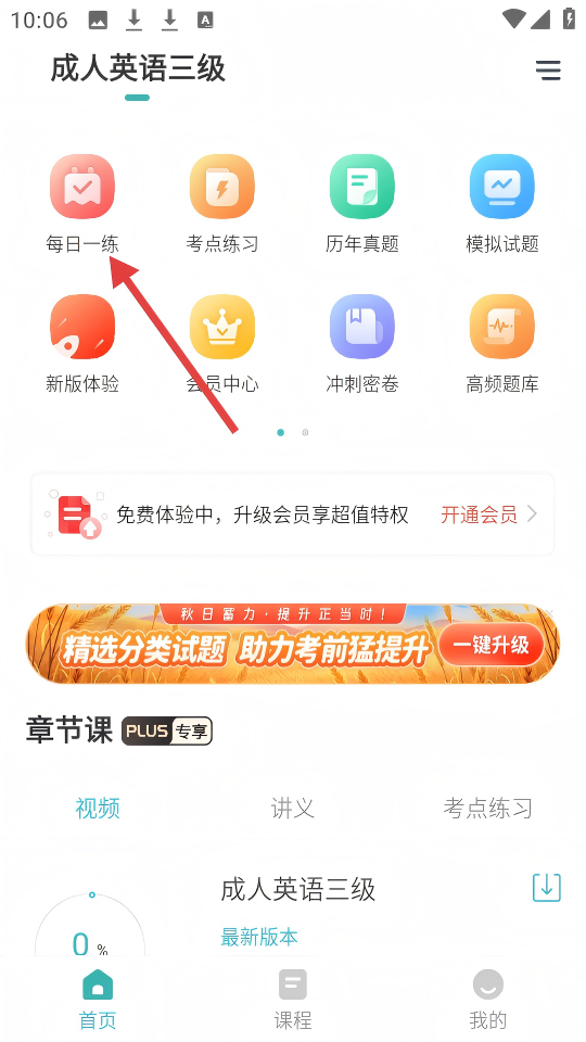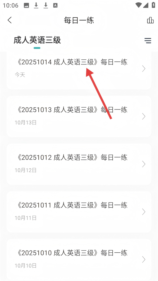 2、进入【每日一练】页面后,选择《20251014成人英语三级》每日一练。
