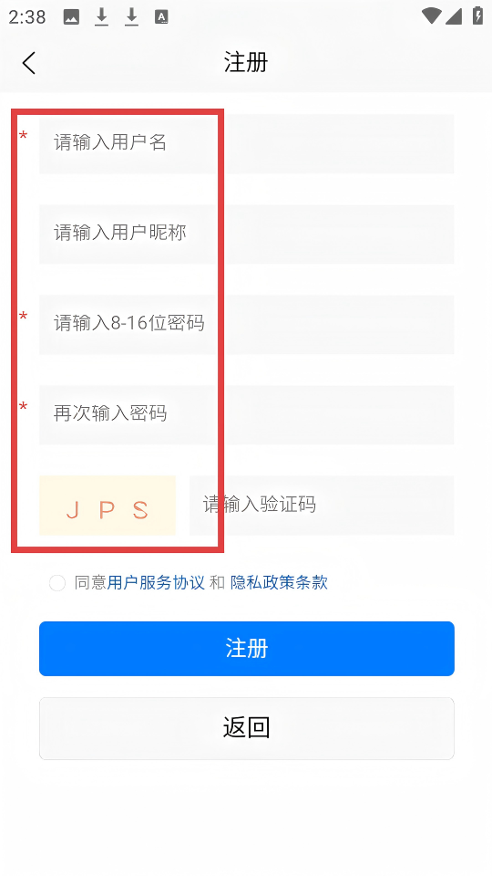 4、【注册】页面,依次输入【用户名】【用户昵称】等信息,勾选协议后,点击【注册】按钮。