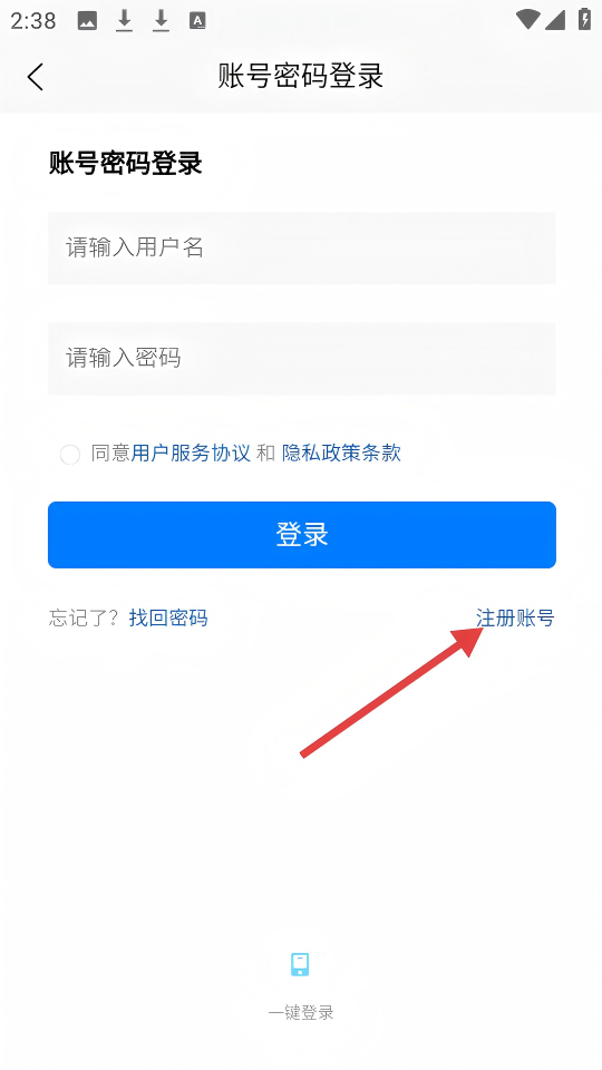 3、在【账号密码登录】页面,点击【注册账号】,进入注册界面。