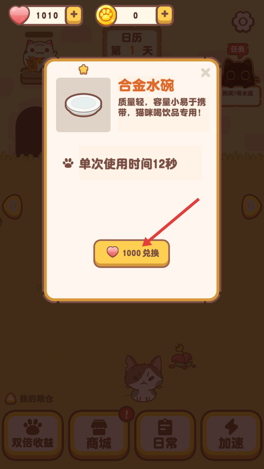 4、消耗1000【爱心】可兑换【合金水碗】。