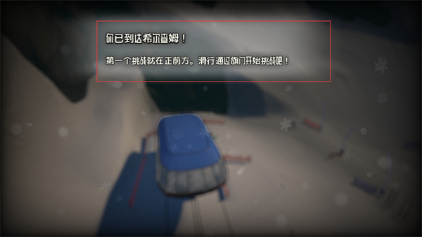 4、到达达希留姆后,按提示滑行通过闸门,前往正前方的第一个跳台,开始进行滑雪跳台动作。
